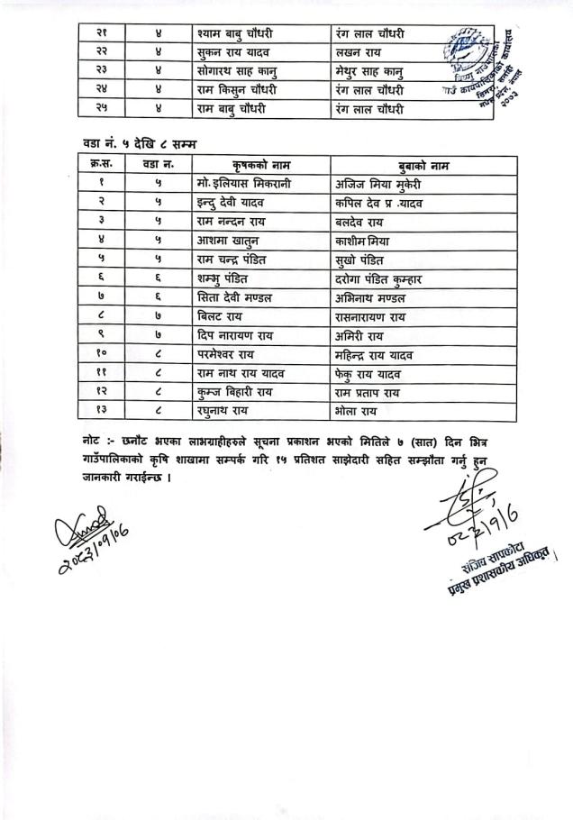 लाभग्राहि छनौट सम्बन्धी सूचना।