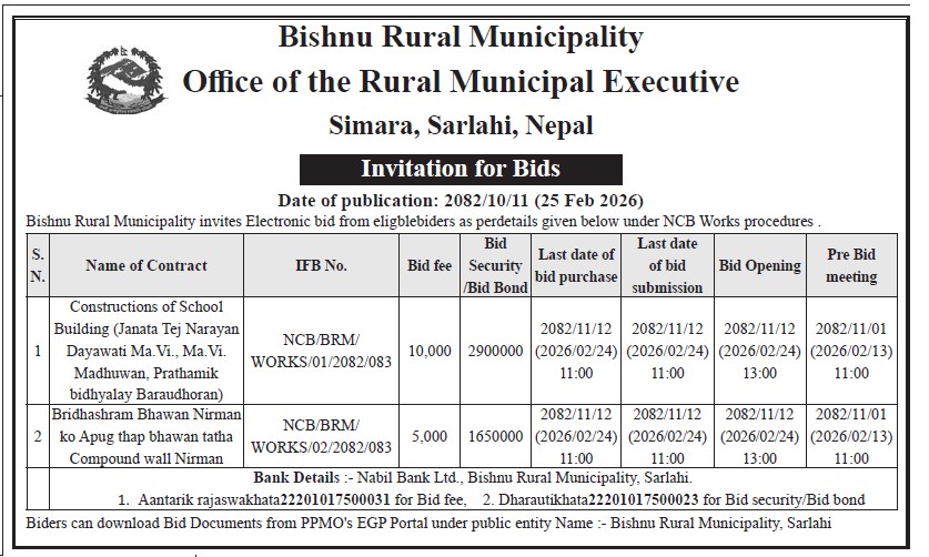 सार्वजनिक खरिद/बोलपत्र सूचना