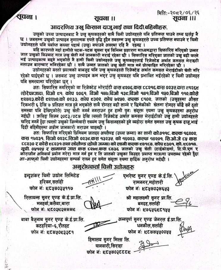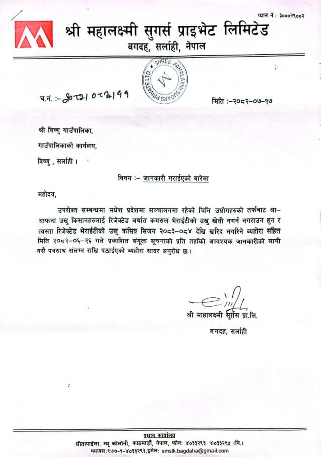 जनकारी गराईएको बारेमा सूचना