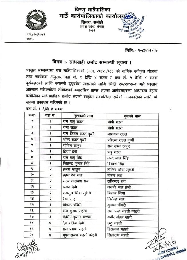 लाभग्राहि छनौट सम्बन्धी सूचना।