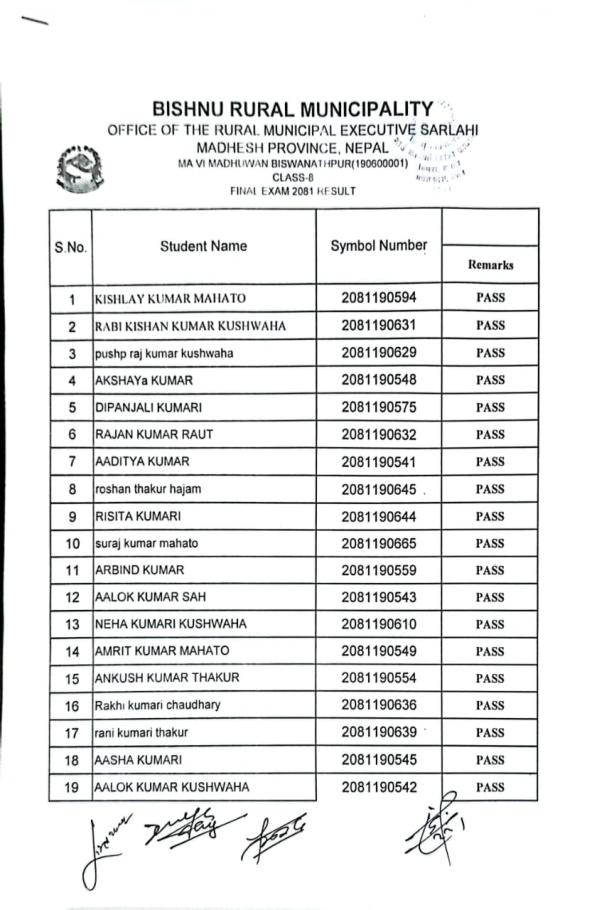 CLASS-8 FINAL EXAM-2081 को अन्तिम नतिजा प्रकाशन।