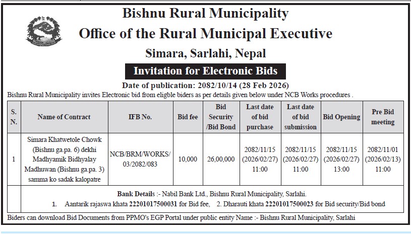 सार्वजनिक खरिद/बोलपत्र सूचना